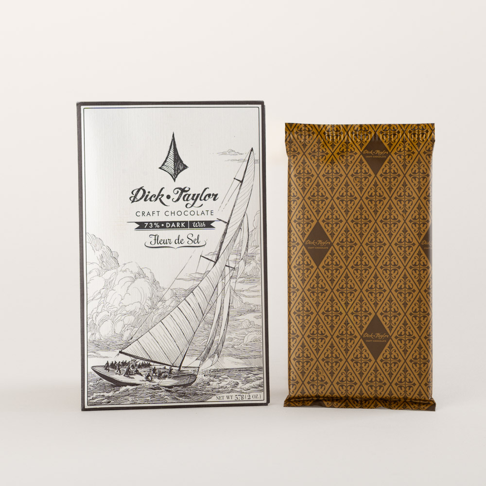 Dick Taylor's Fleur de Sel is a nicely balanced dark chocolate bar made with organic Belize cacao. A light sprinkle of Guatemalan sea salt brings out the rich notes of butterscotch, peach cobbler, and dry roasted almonds.