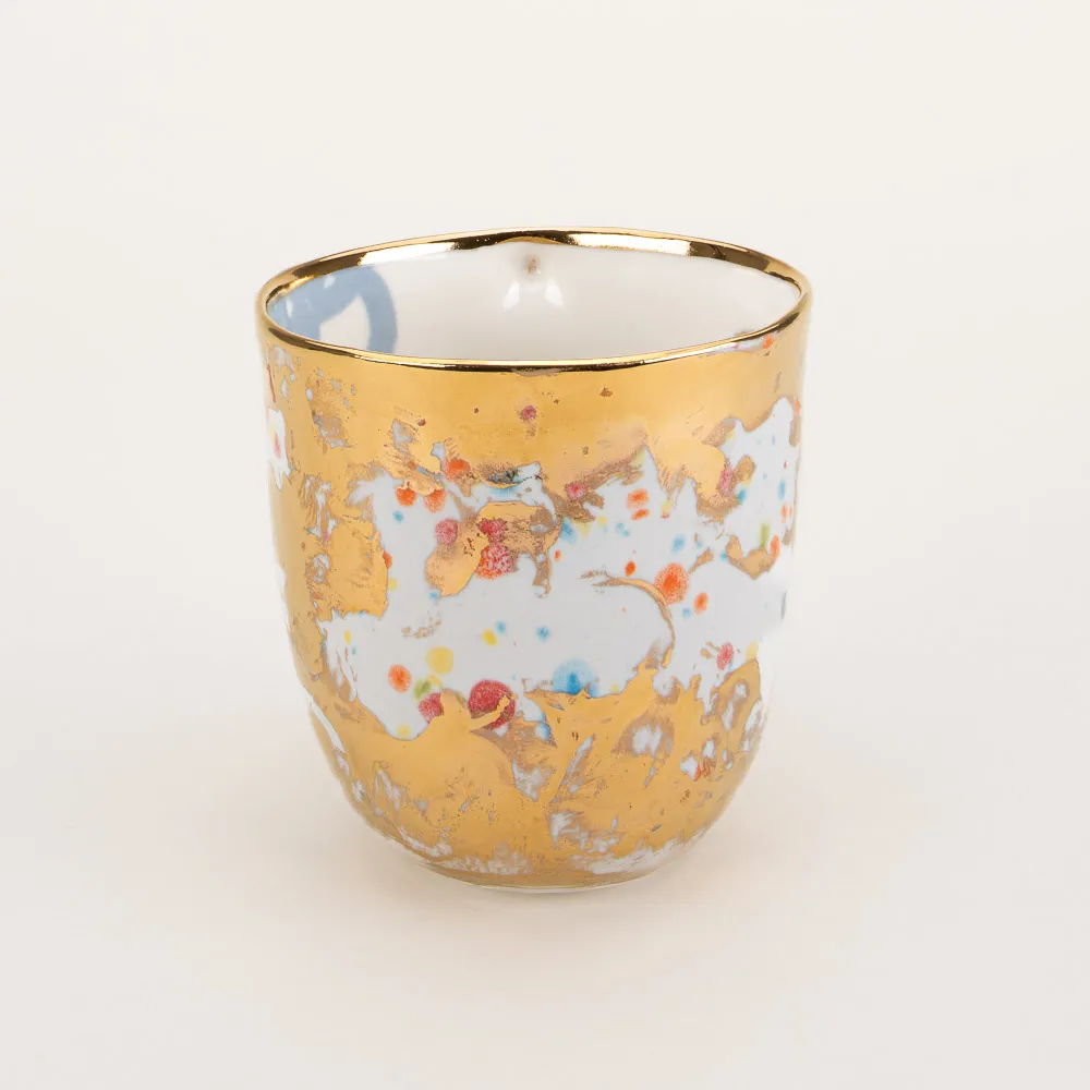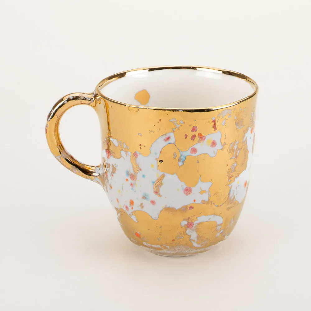 Each mug is handmade with 18k gold detailing. They are individually crafted at the Maiuri studio as one-of-a-kind pieces, with variations in glaze, color, and artistic impression. The images provided are representative of and comparably similar to the wares available for purchase.