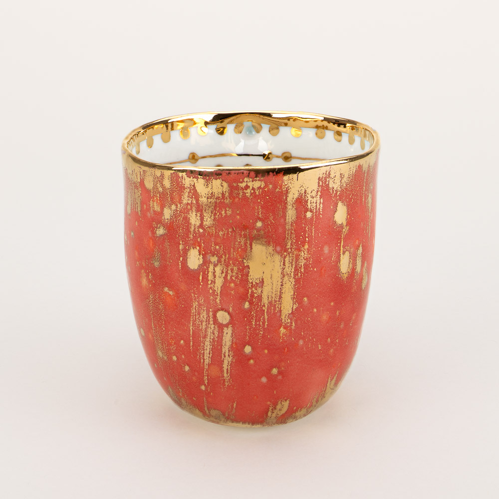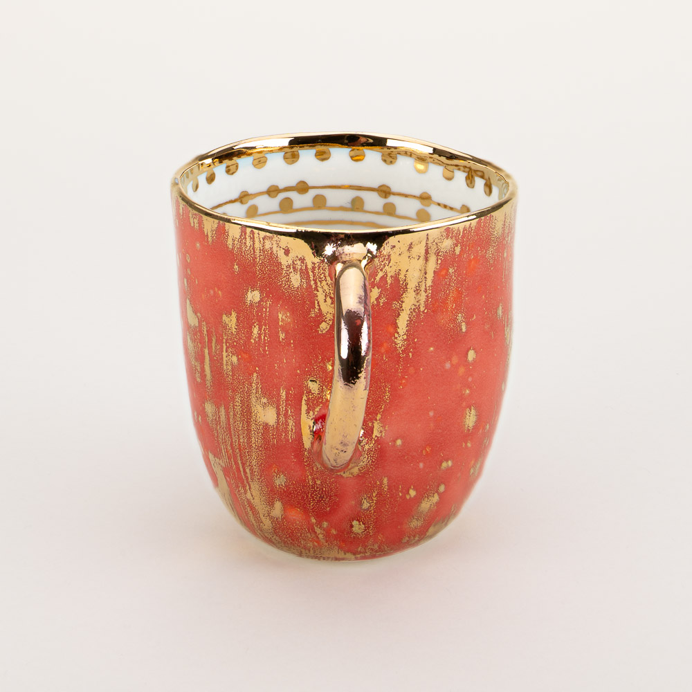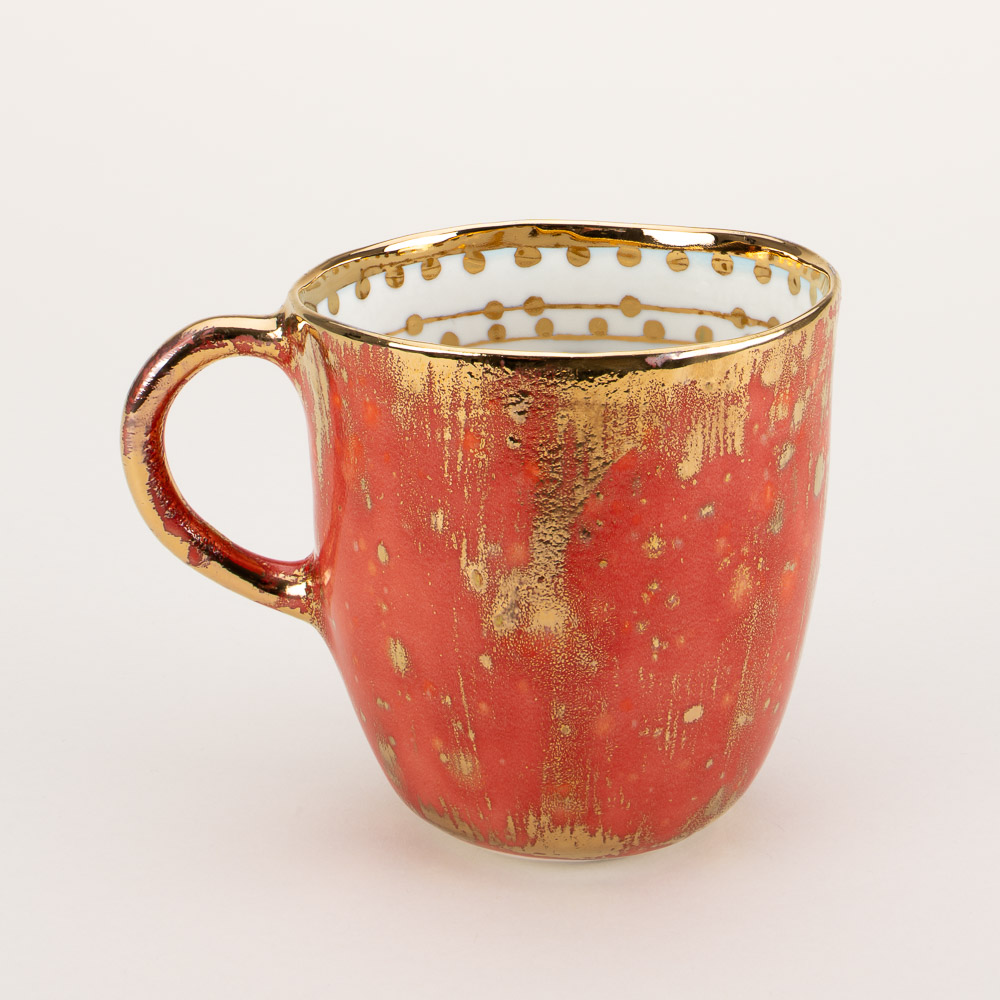 Each mug is handmade with 18k gold detailing. They are individually crafted at the Maiuri studio as one-of-a-kind pieces, with variations in glaze, color, and artistic impression. The images provided are representative of and comparably similar to the wares available for purchase.